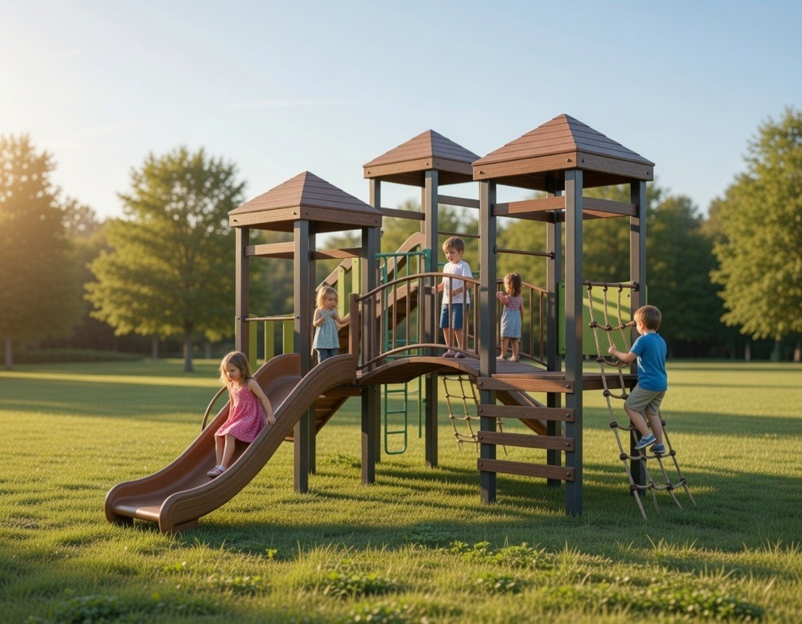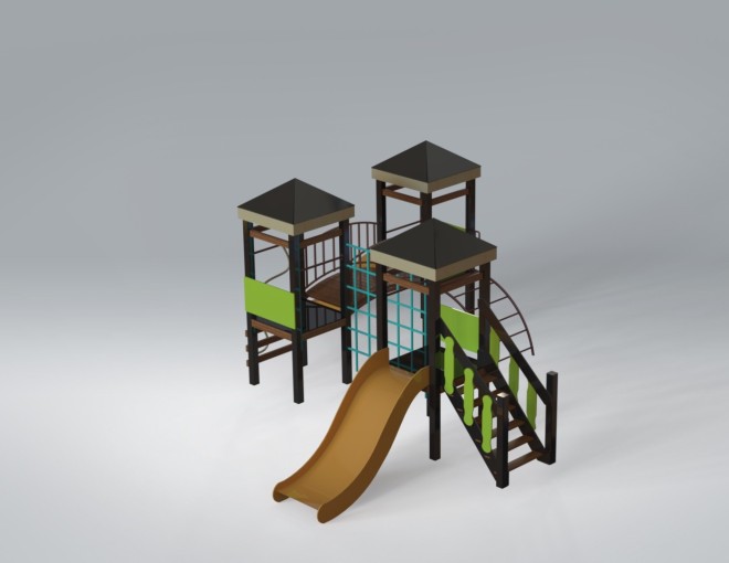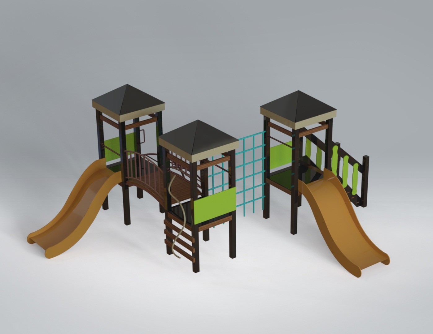Детский игровой комплекс (6,020 м х 6,000 м х 2,900 м) — многоуровневая игровая конструкция, объединяющая сразу несколько башен, соединённых переходами и элементами для лазания. Комплекс создаёт ощущение настоящего маршрута приключений, где каждый переход открывает новый сценарий игры.