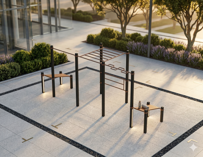 Элементы комплекса позволяют выполнять упражнения на силу, выносливость, координацию и баланс, а также подходят для круговых тренировок и занятий воркаутом. Разноуровневые перекладины и дополнительные модули делают комплекс удобным как для начинающих, так и для более подготовленных пользователей.